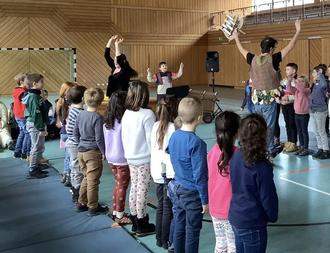 Am 31. Januar bekam die Grundschule Klüsserath Besuch aus Wien. Die Kinderoper „Papageno“ war dort zu Gast und führte „Die Zauberflöte“ als interaktives Singspiel auf. Zwei Akteure der Oper Wien brachten den Kindern der 1. bis 4. Klasse den Inhalt und die Musik der Oper von Amadeus Mozart näher. Unterstützt wurden sie von allen Schülerinnen und Schülern, die in die Aufführung miteinbezogen wurden. Dieses Erlebnis wird den Kindern noch lange in Erinnerung bleiben.