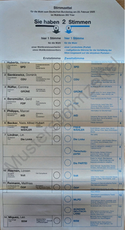 Nachstehend ist ein Musterstimmzettel der Wahl abgedruckt.