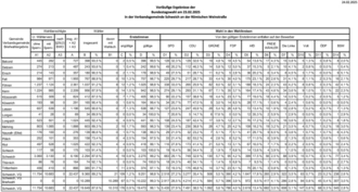 Das vorläufige Ergebnis der Wahl zum 21. Deutschen Bundestag in der Verbandsgemeinde Schweich an der Römischen Weinstraße nach Erfassung aller Schnellmeldungen ist auf den Seiten _________ abgedruckt.