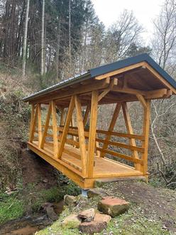 Die neu errichtete Fußgängerbrücke beim Dreesbrunnen ist fertiggestellt und ersetzt die alte, marode Brücke, die über Jahre hinweg zunehmend baufällig geworden war.Die alte Brücke, die viele Spaziergänger und Wanderer nutzten, zeigte bereits deutliche Schäden an der Holzstruktur und den tragenden Elementen. Witterungseinflüsse und die natürliche Alterung des Materials hatten ihre Spuren hinterlassen, sodass eine Erneuerung dringend notwendig wurde.