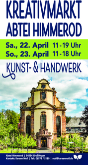 Am Samstag, den 22. April und Sonntag den 23. April, findet im Brunnenpark der Abtei Himmerod ein großer Kunshandwerker- und Kreativmarkt statt.