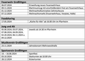 Außerdem wurden noch die geplanten Veranstaltungstermine von den Vereinen und Gruppen besprochen und wie folgt festgehalten: