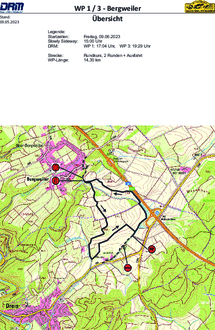 die Wertungsprüfung „Zylinderhaus Bergweiler“ wird auf Wirtschaftswegen zwischen Bergweiler und Dreis auf einem Rundkurs befahren.