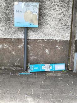 Am letzten Freitag wurde auch noch die E-Bike Ladestation gewaltsam umgetreten.