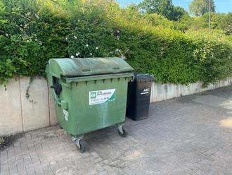 Wir haben uns dazu entschlossen, die Container am Friedhof etwas weiter entfernt zum Nebeneingang der Trauerhalle aufzustellen. Die Container befinden sich nun an der Mauer der Parkfläche.