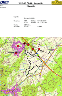 die Wertungsprüfung „Dr. Oetker Bergweiler“ wird auf Wirtschaftswegen zwischen Bergweiler und Dreis auf einem Rundkurs befahren.