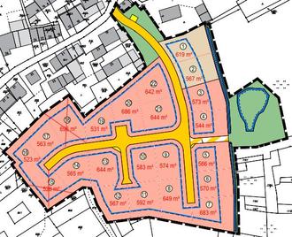 Die Ortsgemeinde Binsfeld bietet die aus dem Plan ersichtlichen Baugrundstücke im Rahmen einer Interessenbeurkundung zum Kauf an.