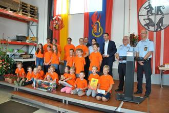 Im Anschluss daran war es Manuel Follmann eine besondere Ehre, die neue Bambini-Feuerwehr Altrich zur Gründung zu beglückwünschen. Ganze 20 Kinder werden fortan den Bambinis angehören und gemeinsam mit Rebecca Benz spielerisch ihren Aufgaben nachgehen und zu einem guten Team zusammenwachsen. Peter Gerhards, Vizepräsident des Landesfeuerwehrverbandes, übergab in feierlicher Runde die Urkunde und hielt gemeinsam mit Wehrführer Henning Benz eine Überraschung für die Nachwuchskräfte bereit. Mit strahlenden Augen nahmen die Bambinis ihr Spielzeug-Feuerwehrauto in Empfang und versprachen, zukünftig gut darauf aufzupassen.