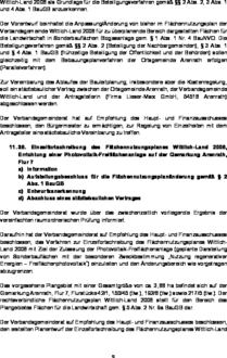Daraufhin hat der Verbandsgemeinderat auf Empfehlung des Haupt- und Finanzausschusses beschlossen, das Verfahren zur Einzelfortschreibung des Flächennutzungsplanes Wittlich-Land 2006 mit Ziel der Zulassung der Photovoltaik-Freiflächenanlage (geplante Darstellung von Sonderbauflächen mit der besonderen Zweckbestimmung „Nutzung regenerativer Energien – Freiflächenphotovoltaik“) einzuleiten und den Änderungsbereich wie vorgetragen abzugrenzen.