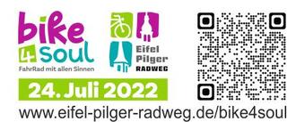 Am Sonntag, den 24.7.22 findet in diesem Jahr der Radfahrtag „bike4soul“ entlang des Pilger - Radweges von Himmerod nach Klausen statt. Entlang der Radstrecke wird es eine Vielzahl an Aktionen und Angeboten, insbesondere auch für Familien geben.