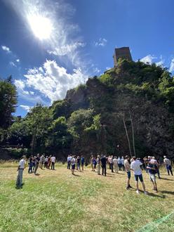 Besser konnte das Wetter am vergangenen Freitag in Manderscheid nicht mitspielen. Denn am Fuße der Niederburg versammelten sich bei strahlendem Sonnenschein knapp 100 geladene Gäste auf der Turnierwiese, um gemeinsam ein touristisches Highlight einzuweihen: Den Burgen-Klettersteig Manderscheid, der sich in ein einmaliges Landschaftserlebnis einbettet und mittelschwere Kletterpassagen mit kurzen Wanderstrecken verbindet.