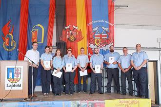 Laufeld - Kürzlich kamen in Laufeld zahleiche Besucher/-innen zum Feuerwehrfest zusammen, um die feierliche Übergabe des neuen Mehrzweckfahrzeugs MZF II zu erleben. Das Ereignis wurde zudem mit der Gründung der Bambinifeuerwehr sowie zahlreichen Verpflichtungen wie auch Beförderungen begleitet.