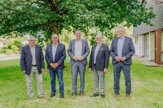 (v. l. n. r. Beigeordneter Heinz-Helmut Boschan, Erster Beigeordneter Fritz Kohl, Bürgermeister Manuel Follmann, Beigeordneter Norbert Kraff, Beigeordneter Günter Esch)