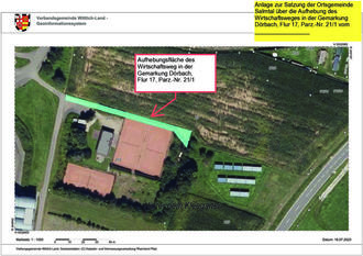 Das in der Gemarkung Dörbach liegende und bisher als gemeindeeigener Fahrweg dienende Grundstück Flur 17, Parz. Nr. 21/1 verliert durch den Neubau des geplanten Feuerwehrgerätehauses seine Bedeutung des Wirtschaftsweges. Die Erschließung der landwirtschaftlich genutzten Grundstücke bleibt gewährleistet.