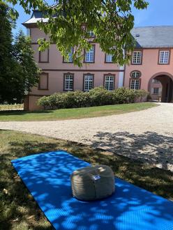 So genossen zahlreiche Teilnehmer/-innen die Yogaeinheiten mit Birgit Neidhöfer im hinteren Teil des Schlossgartens. Im Schatten der großen Bäume gelang es so, für einen kurzen Moment die Welt um sich zu vergessen und im eigenen Rhythmus die Übungen zu machen.