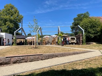 Auch der Weinstand des ansässigen Weingutes Georg Graf von Walderdorff lud zu einem Gläschen im schattigen Park ein. Die Kinder tobten unterdessen auf dem gegenüberliegenden Spielplatz der Kindertageseinrichtung St. Martin.