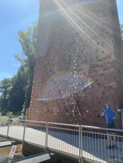 Auf der Strecke selbst war es am Kletterpfeiler möglich, sich die Beine zu vertreten und so auch mal an der 15 Meter hohen Kletteranlage die Armkraft mit wirken zu lassen.