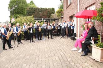 Rosemarie u. Herbert Wiesmann. Zu diesem Anlass stellte sich die Vereinsgemeinschaft am Sonntag zur Gratulation ein. Der Musikverein Niederöfflingen spielte ein Ständchen und Ortsbürgermeister Hermann Clemens trug ein Gedicht von Gabriele Rolf vor “Die Hand des Andern“ allerdings im Dialekt von Nö. Er sagte dem Brautpaar, das nächste Ziel sei die Eiserne Hochzeit 65 Jahre. Er gratulierte recht herzlich im Namen der Gemeinde zu diesem Feste und übergab ein Präsent. Ein kleiner Regenguss kam von oben, es waren Freudentränen des Himmels. Der Wehrführer der FFw. Herr Jürgen Zimmer gratulierte im Namen der Vereinsgemeinschaft dem Brautpaar. Bei gemütlichem Zusammensein mit Gesprächen wurde dieses Fest gemütlich gefeiert.