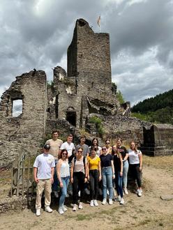 Nach einem reichhaltigen Frühstück an der Schutzhütte der Turnierwiese und einer herzlichen Begrüßung durch Sachgebietsleiter Organisation, Dennis Kinne, Personalleiterin Anne Gerhards und Ausbildungsbeauftragte Tina Bohn, ging es für die Auszubildenden direkt auf die Manderscheider Burgen, um dort als Pilotgruppe die Augmented Reality im Rahmen des Projektes Mediale Burgenwelt ausprobieren zu dürfen.