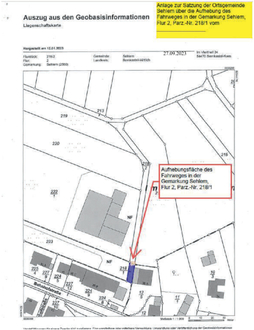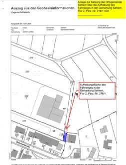 Das in der Gemarkung Sehlem liegende Grundstück „Flur 2, Parz.-Nr. 218/1“ wird nicht mehr als gemeindeeigener Fahrweg benötigt und daher aufgehoben. Die Erschließung der angrenzenden Grundstücke bleibt gewährleistet.