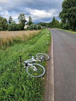 Das Vorderrad ist beschädigt, so das man sicher nicht mehr damit weiterfahren konnte.