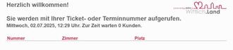 Zusätzlich zur Onlinebuchung ist es auch möglich, vor Ort ein Ticket am Terminal zu ziehen und bequem im Wartebereich Platz zu nehmen. Durch Aufruf über den Bildschirm wissen die Bürgerinnen und Bürger, wann sie an der Reihe sind. So wird unnötiges „Schlangestehen“ im Gang vermieden.