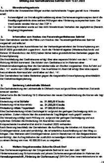 Nach Beratung beschließt der Gemeinderat die Ausführung der Arbeiten mit Alustehfalz. Ortsbürgermeister Junk wird ermächtigt, die erforderliche Ausschreibung auf den Weg zu bringen. Des Weiteren wird Ortsbürgermeister Junk im Benehmen mit den Beigeordneten ermächtigt, den Auftrag inklusive der zusätzlich notwendigen Arbeiten und Gerüstarbeiten bis zu einem Betrag von max. 40.000,00 Euro zu vergeben.