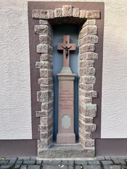 Ein dort ins Mauerwerk eingebautes Wegekreuz brauchte einen neuen Standort. Nach Beratung im Gemeinderat über unterschiedliche Standortmöglichkeiten hat der Rat den Vorschlag von Manuel Kisgen angenommen. Das Wegekreuz wurde nun in die Giebelwand des alten Pfarrhauses direkt an der Dechant-Schmitz-Straße installiert. Herr Kisgen hat die Kosten für die Demontage und Montage übernommen, sowie den Platz für dieses schöne gut erhaltene Wegekreuz zu Verfügung gestellt.