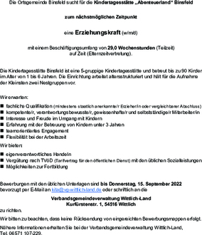 Die Ortsgemeinde Binsfeld sucht für