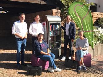 Bürgermeister der Verbandsgemeinde Manuel Follmann, Ortsbürgermeistere Christoph THieltges, Westenergie Regionalmanager Marco Felten und die beiden Bücherpatinnen Susanne Meyers und Julitta Kuhnen (Foto: privat)