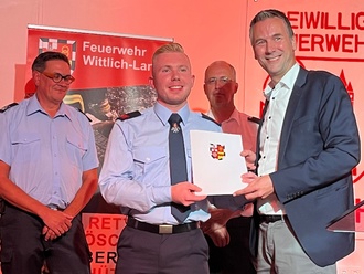 • Bernhard Burkel (Feuerwehr Landscheid) schloss kürzlich erfolgreich den Gruppenführerlehrgang ab und wurde zum Brandmeister befördert, zum Gruppenführer bestellt, zum stellvertretenden Wehrführer ernannt und als Ehrenbeamter vereidigt.