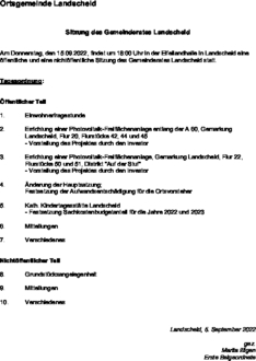 Am Donnerstag, den 15.09.2022, findet um 18:00 Uhr in der Eifellandhalle in Landscheid eine öffentliche und eine nichtöffentliche Sitzung des Gemeinderates Landscheid statt.