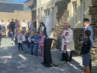 Auch Schulleiterin Sabrina Herz zeigte sich froh und dankbar über den erfolgreichen Abschluss der Maßnahme. Pastor Klauer nutzte die Gelegenheit, das Gebäude einzusegnen, bevor es dann der Öffentlichkeit zur Besichtigung offen stand.