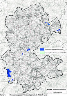 Die seitens der Verbandsgemeinde Wittlich-Land ausgewiesenen Sondergebiete für die Windenergienutzung sowie die über den regionalen Raumordnungsplan (ROP 2004) gesicherten Flächen für die Windenergie sind in dem abgedruckten Übersichtsplan (Verbandsgemeindegebiet - Karte 1) dargestellt.