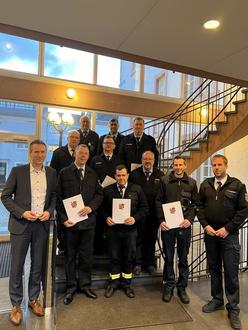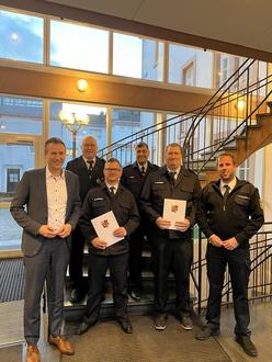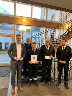 Bürgermeister Follmann dankte den beiden für ihr Engagement und zeigte sich erfreut, dass beide Kameraden dem aktiven Dienst weiterhin erhalten bleiben.