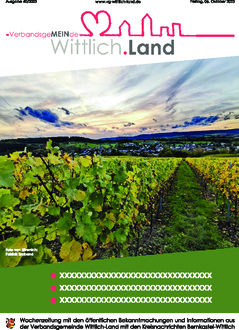 Nächster Artikel: Verbandsgemeinde Wittlich-Land neuer Partner des Verkehrsverbunds Region Trier (VRT) beim GästeTicket Ab Oktober können damit Übernachtungsgäste teilnehmender Betriebe im ganzen Verbundgebiet des VRT mit Bussen und Zügen fahren