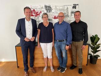 v.l.n.r. Bürgermeister Manuel Follmann, Susanne Sonnen, Personalratsvorsitzender Jürgen Heinz und Fachbereichsleiter Andreas Lautwein