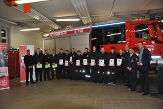 Darüber hinaus beförderte Follmann nach erfolgreich absolvierten Lehrgängen an der Landesfeuerwehrakademie in Koblenz Markus Biewer, Christoph Hemmerling und Jakob Schiff zum Brandmeister sowie Frank Assmann zum Hauptbrandmeister.