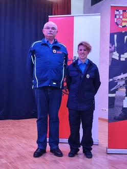 Eveline Kemmer erhielt das Silberne Ehrenzeichen für 25 Jahre treuen Einsatz und Martin Eltges wurde mit dem Goldenen Ehrenzeichen für beeindruckende 45 Jahre Feuerwehrdienst ausgezeichnet.