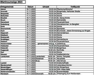 | 11.11.2023 | Niederkail: 18.00 Uhr | Neustraße | |