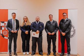 Landscheid: Alexander Schröder wurde nach erfolgreichem Abschluss der Gruppenführerausbildung an der Landesfeuerwehr- und Katastrophenschutzschule (LFKA) Koblenz zum stellvertretenden Wehrführer und Brandmeister ernannt und feierlich vereidigt.