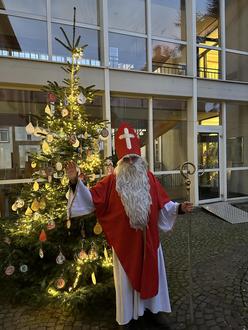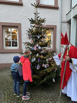 Auch der Nikolaus hat sich gefreut, dass Ihr ihn so zahlreich in der Verwaltung besucht habt und hofft, dass Ihr Euch Euren Weckmann habt schmecken lassen. Ebenso hat er sich über die Pakete der Kita Niersbach, der Grundschule Salmtal sowie der Rosenberg-Schule Bernkastel-Kues gefreut und für jede einzelne Kugel einen ganz besonderen Platz am Baum ausgesucht.