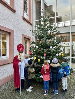 Das Ergebnis kann sich sehen lassen! Dank Eurer Hilfe, liebe Kinder, ist wieder einmal ein wunderschön geschmückter Weihnachtsbaum entstanden. Mit viel Liebe und Kreativität habt Ihr die zahlreichen Sterne gestaltet und dem Nikolaus überreicht. Dabei hoffen wir, dass der ein oder andere Eurer Wünsche schon bald in Erfüllung gehen wird.