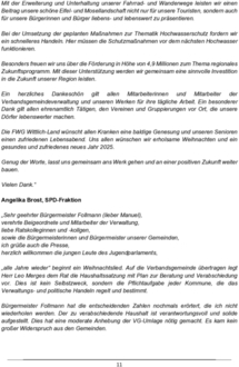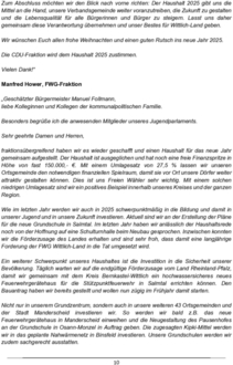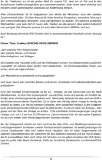 Zum Abschluss möchten wir den Blick nach vorne richten: Der Haushalt 2025 gibt uns die Mittel an die Hand, unsere Verbandsgemeinde weiter voranzutreiben, die Zukunft zu gestalten und die Lebensqualität für alle Bürgerinnen und Bürger zu steigern. Lasst uns daher gemeinsam diese Verantwortung übernehmen und unser Bestes für Wittlich-Land geben.