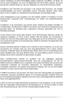 An die Fraktionen: es ist ein großer Wert für unsere VG, dass wir im Rat und in den Ausschüssen fraktionsübergreifend gut zusammenarbeiten, jeder seine Ideen einbringt und meistens einen gemeinsamen Beschluss zur Abstimmung bringen.