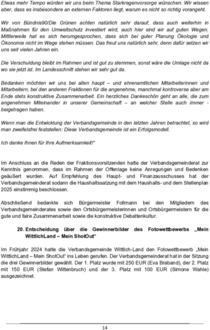 Wir von Bündnis90/Die Grünen achten natürlich sehr darauf, dass auch weiterhin in Maßnahmen für den Umweltschutz investiert wird, auch hier sind wir auf guten Wegen. Mittlerweile hat es sich herumgesprochen, dass sich bei guter Planung Ökologie und Ökonomie nicht im Wege stehen müssen. Das freut uns natürlich sehr, denn dafür setzen wir uns seit vielen Jahren ein.