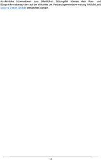 Ausführliche Informationen zum öffentlichen Sitzungsteil können dem Rats- und Bürgerinformationssystem auf der Webseite der Verbandsgemeindeverwaltung Wittlich-Land www.vg-wittlich-land.de entnommen werden.