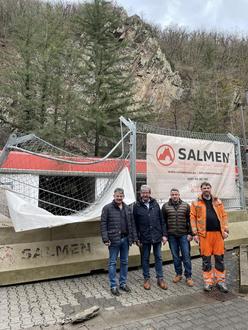 Büroleiter Michael Schneider (VG), Bürgermeister Alfred Steimers, Ortsbürgermeister Christian Arnold und Polier der Firma Salmen (Subunternehmer der Vertragsfirma Gudelj) Herr Pönisch