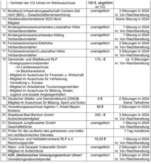 | 6. | Information über die von den Beigeordneten der Verbandsgemeinde Ulmen wahrgenommenen öffentlichen Ehrenämter im Kalenderjahr 2024 |