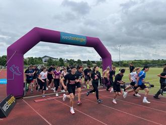 Die Veranstaltung wurde vollständig von Westenergie organisiert und mit Hilfe unserer Sportlehrerin Frau Michaela Himberg umgesetzt. Für eine mitreißende Stimmung sorgten ein DJ und ein Moderator, die das sportliche Event professionell begleiteten. Das Engagement aller Beteiligten war groß: Mit viel sportlichem Einsatz und Teamgeist legten die Teilnehmenden eine beachtliche Gesamtdistanz zurück. Am Ende konnten 500 Euro erlaufen werden, die der Schule nun zur Umsetzung eines eigenen Projekts zur Verfügung stehen.